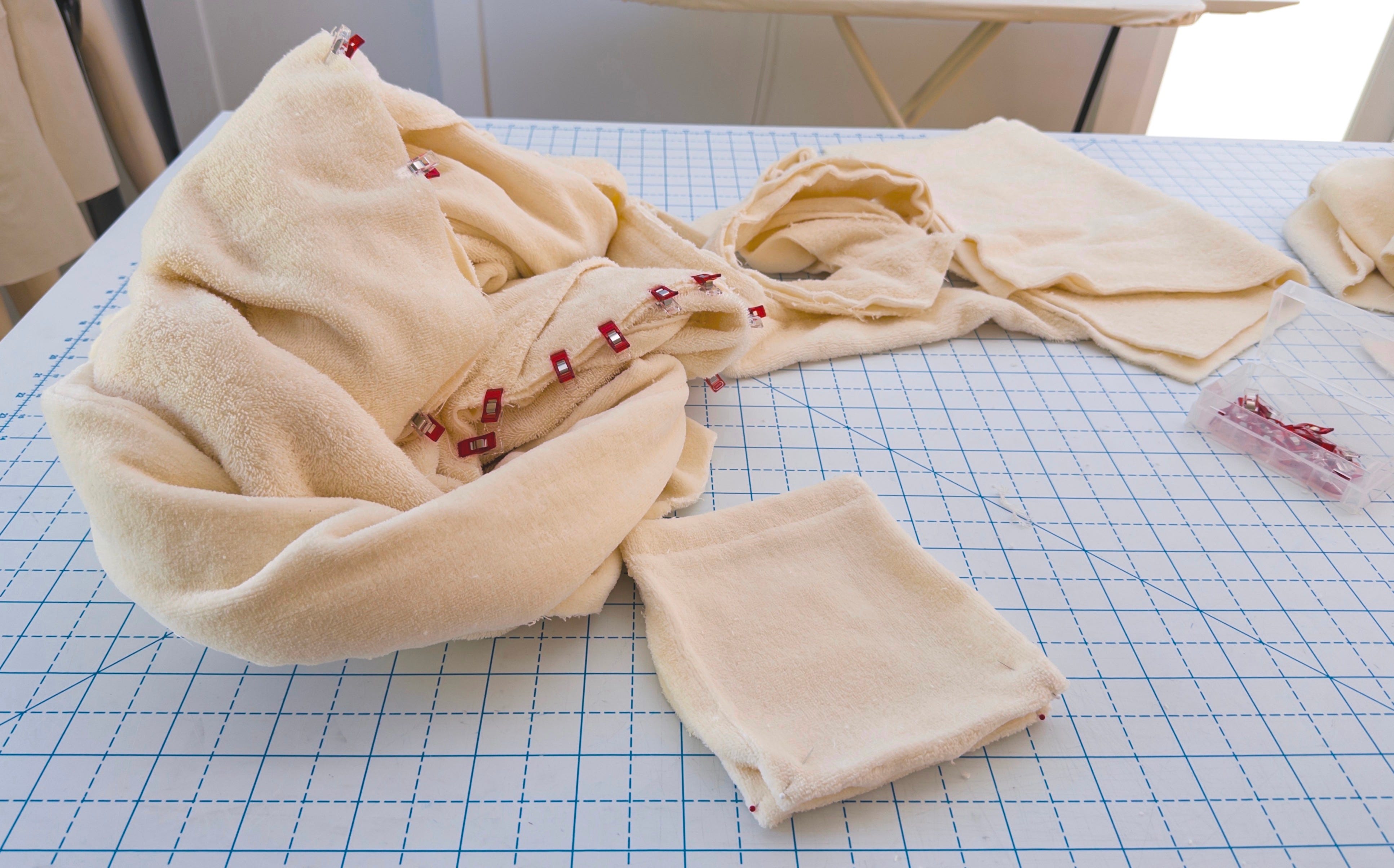 It was early September, but it looked like it had snowed in the sewing room. A fine coating of fabric fluff covered every surface and a very sad lump of a partially sewn bathrobe sat on the sewing table.